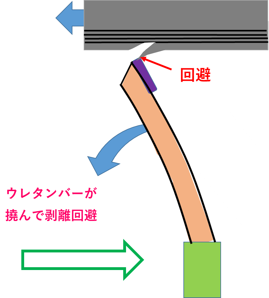 この角度のときに効率的に掻き取る(剪断)ことができます。