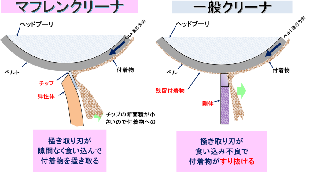 2.クリーナーのベルト押付け力が把握できないので掻き落とし効果が徐々に低下していく。