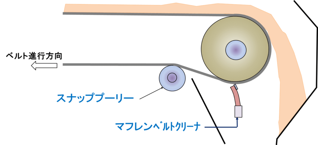 マフレンベルトクリーナーはスナッププーリのテンションが効いているヘッドプーリの直下付近が最適です。