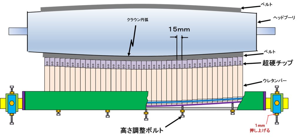 クラウンロールにも高さ調整ボルトで超硬チップの高さを調整できるので取付け可能である。