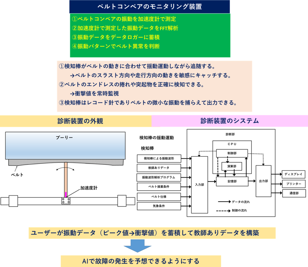検知棒による振動監視でベルトの状態をリアルタイムに把握するシステムです。